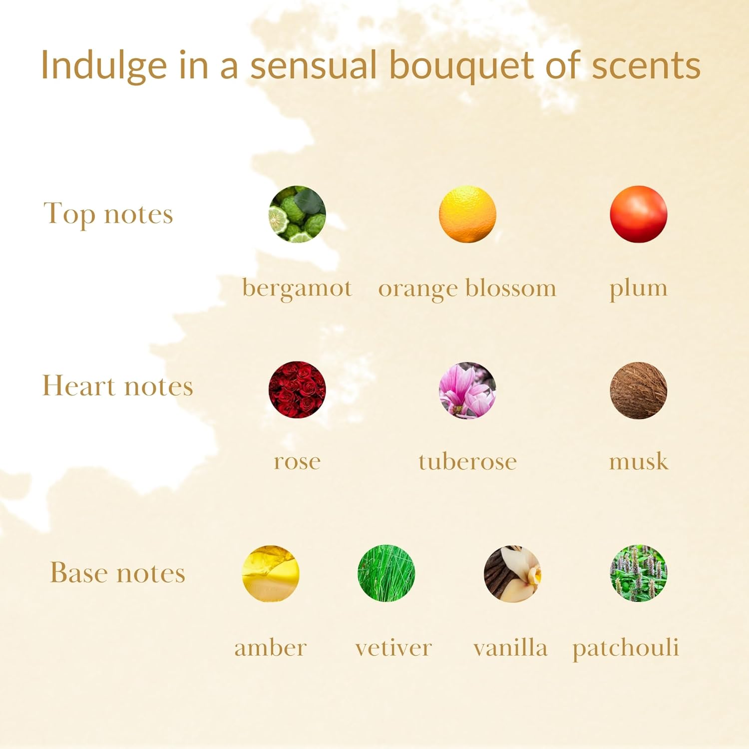- Floral & Fruity Scent: Enjoy a vibrant olfactory experience as juicy plum and bergamot top notes unfold into a floral heart of Arabian rose and tuberose. This floral women’s fragrance finishes with a warm base of vanilla, amber, patchouli, and vetiver, creating a balanced and enchanting scent