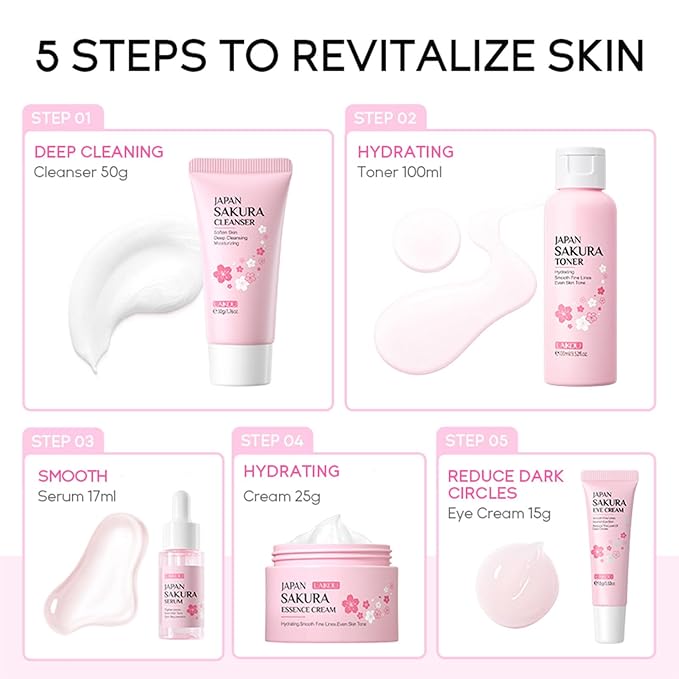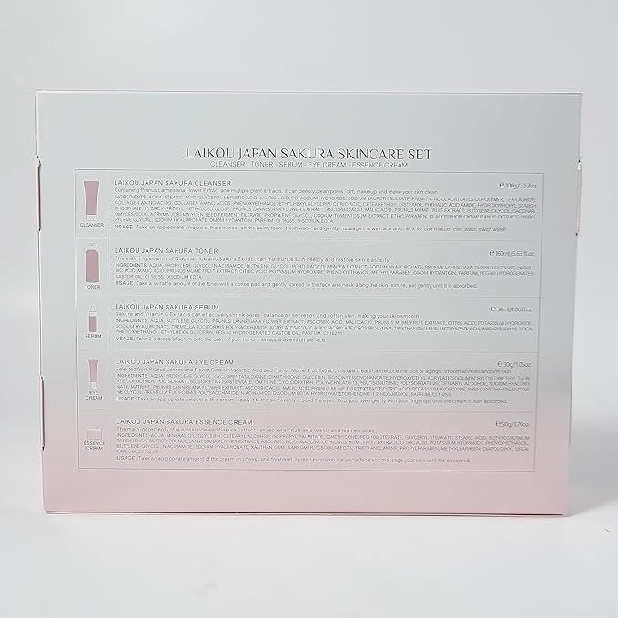 - 【 Enriched with Sakura Extract 】 Cherry ingredients blossoms are rich in vitamins A, B, and E, which can shrink pores, control oil, and are suitable for facial skin care. Sakura oil contains sakura enzymes, which have antioxidant effects, maintain skin elasticity and long-lasting moisturizing skincare and hydration.