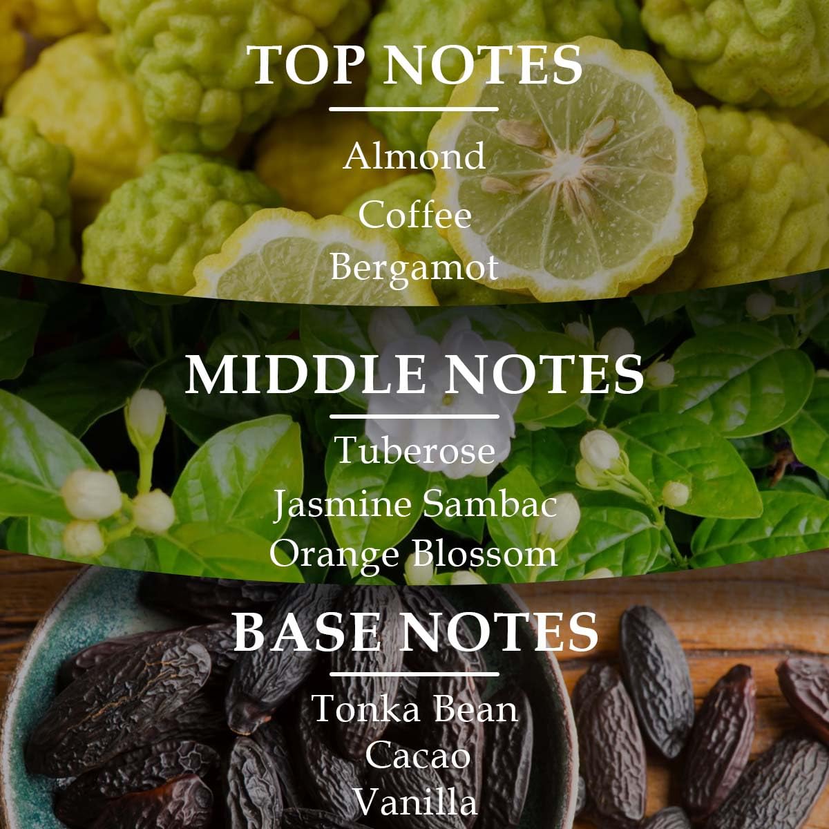 - Luxurious Layered Scent: A dynamic fusion of almond, coffee, bergamot, and lemon (top notes) ignites the senses, unfolding into a masculine floral heart of fresh tuberose, jasmine sambac, orange blossom, orris, and bulgarian rose (middle notes). The fragrance anchors in a bold, sensual base of tonka bean, cacao, vanilla, praline, sandalwood, musk, amber, cashmere wood, cinnamon, patchouli, and cedar (base notes). Engineered for men who command attention, embodying both refinement and raw magnetism.