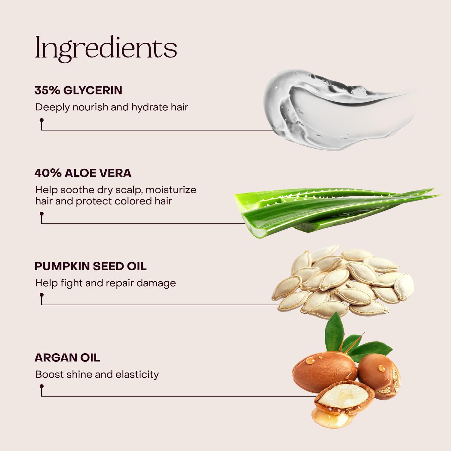 - HAIRCARE MEETS SKINCARE: Contains 30% glycerin for intense hydration, smoothing and shine, and 18% aloe vera to soothe dry scalp and reduce sensitivity for a balanced, healthy scalp.