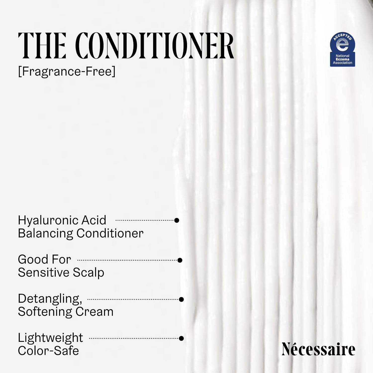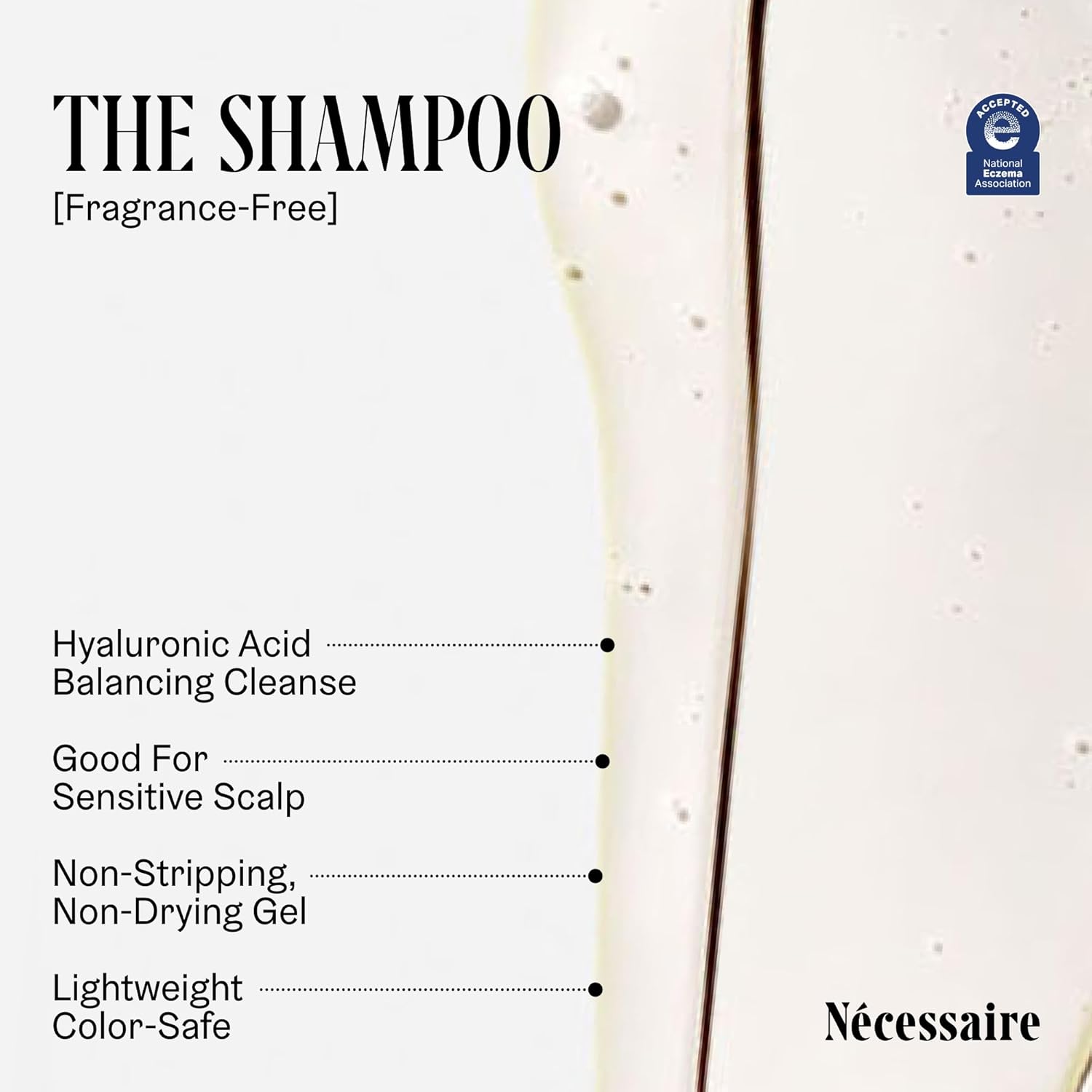 Nécessaire The Hair Duo - Shampoo and Conditioner Set 2 x Full-Size. The Shampoo + The Conditioner. Hyaluronic Acid + Vitamin B Complex. Fragrance-Free. Approved by the National Eczema Association.