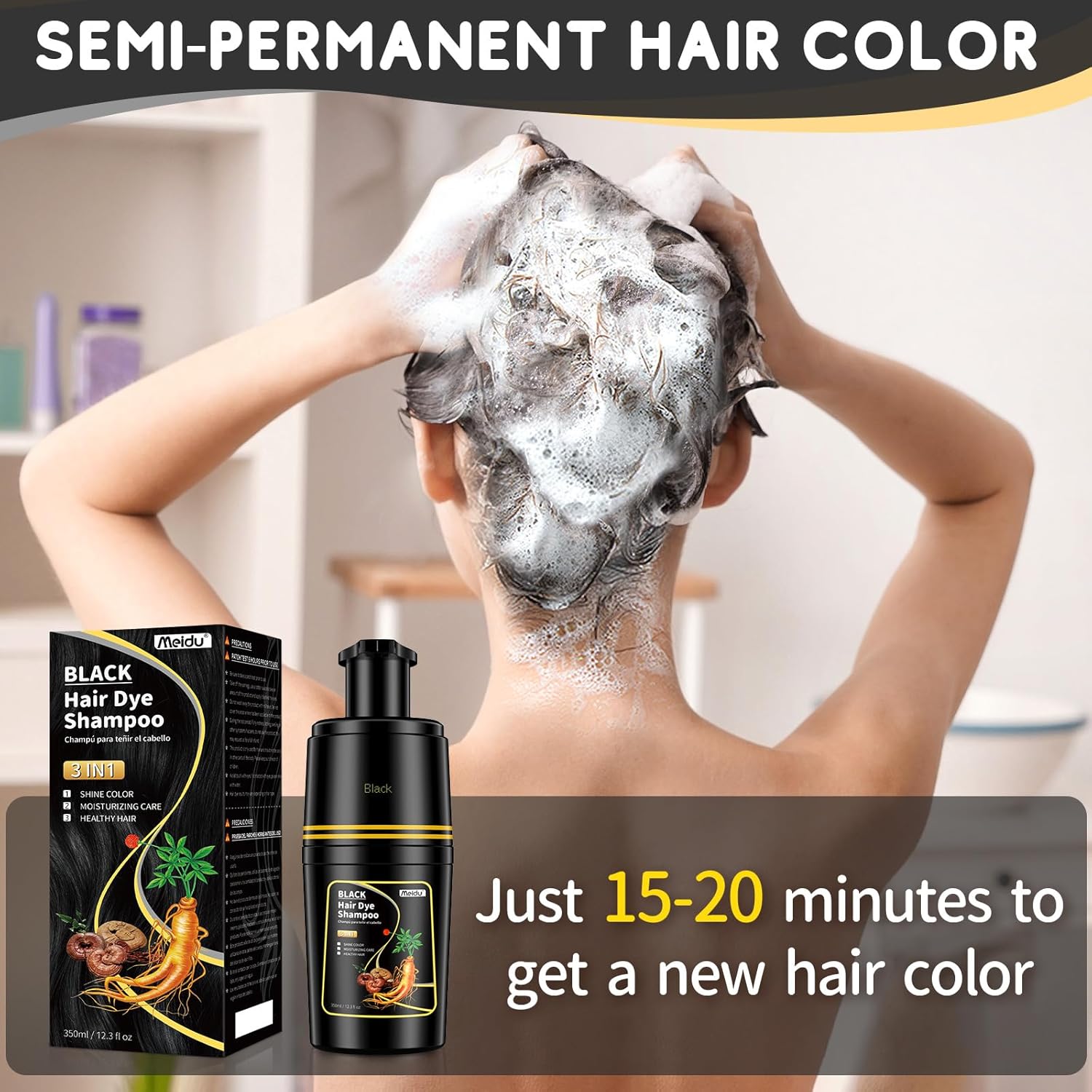 - MILD HERBAL FORMULA: Strengthen your hair roots and make your hair strong and soft with our natural plant-based formula. Ginseng extract nourishes the hair, making it dark and shiny. Lasts for more than 3 weeks without damaging your hair.