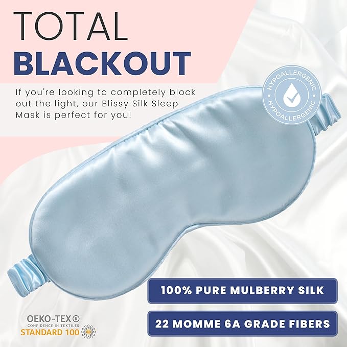 - TOTAL BLACKOUT - If you're looking to completely block out the light, our Blissy Silk Sleep Mask is perfect for you! Made with 100% pure Mulberry silk and 22 momme 6A grade fibers, this mask will keep the light out and help you get a good night's sleep.
