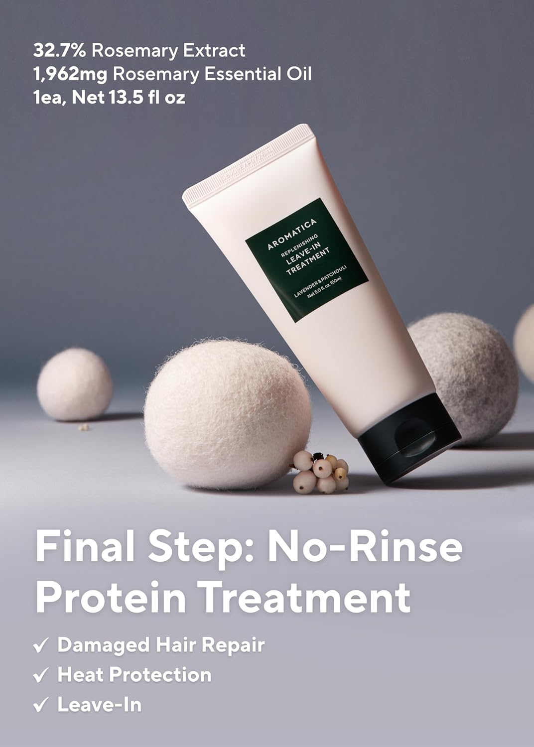 AROMATICA Rosemary Hair Care Gift Set - Shampoo for Hair Growth & Heat Protection, Leave-in Treatment & Scalp Treatment - Hair Care Kit for Women, Sulfate/Paraben Free For Men And Women