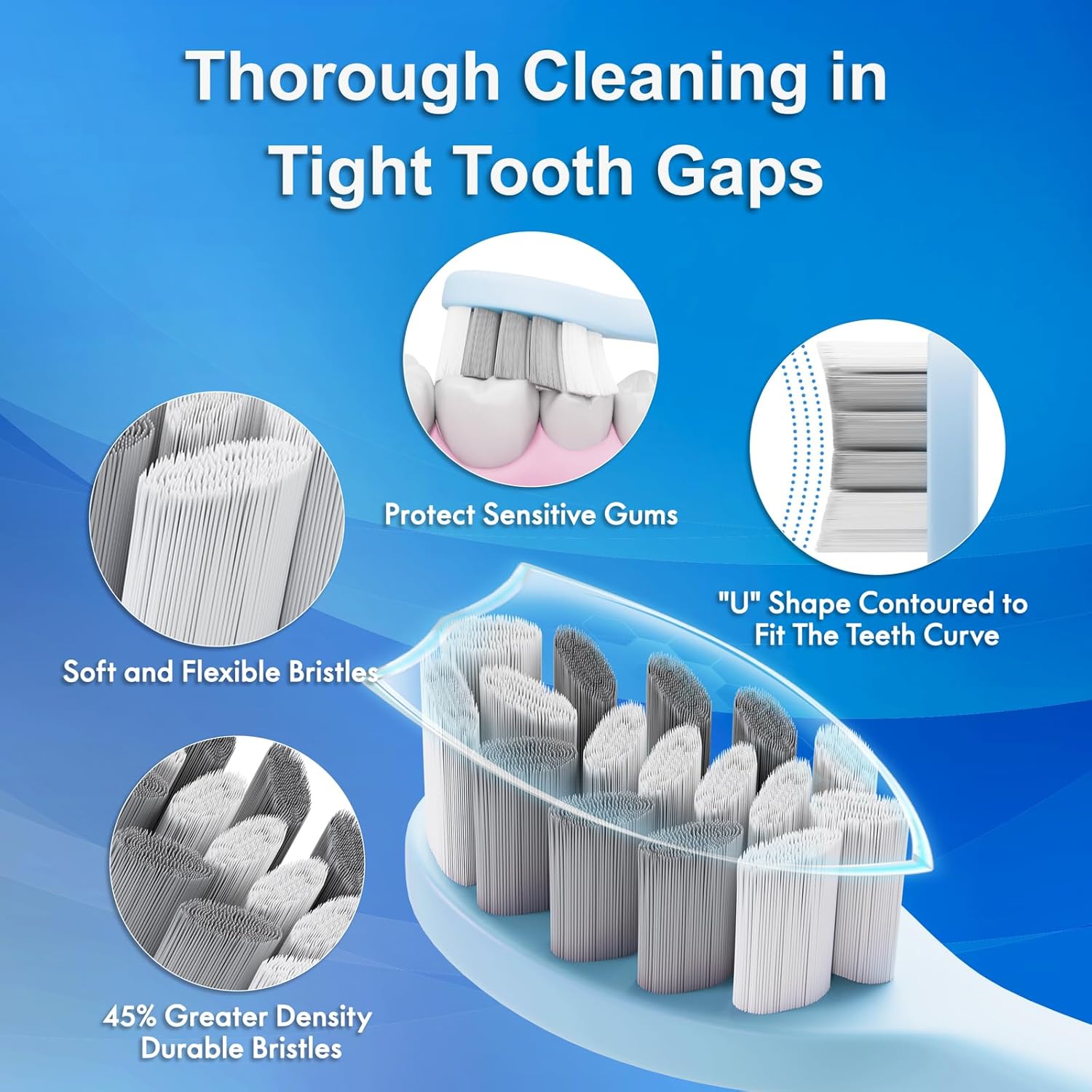 - 【Versatile 5-Mode Design】This electric toothbrush offers users an even more versatile and customizable cleaning experience. The 5 core modes allow users to precisely target their specific oral health requirements, whether it's thorough cleaning, whitening, gum care, or gentle sensitivity-focused brushing. This level of personalization further enhances the product's ability to deliver exceptional cleaning results tailored to individual user needs.