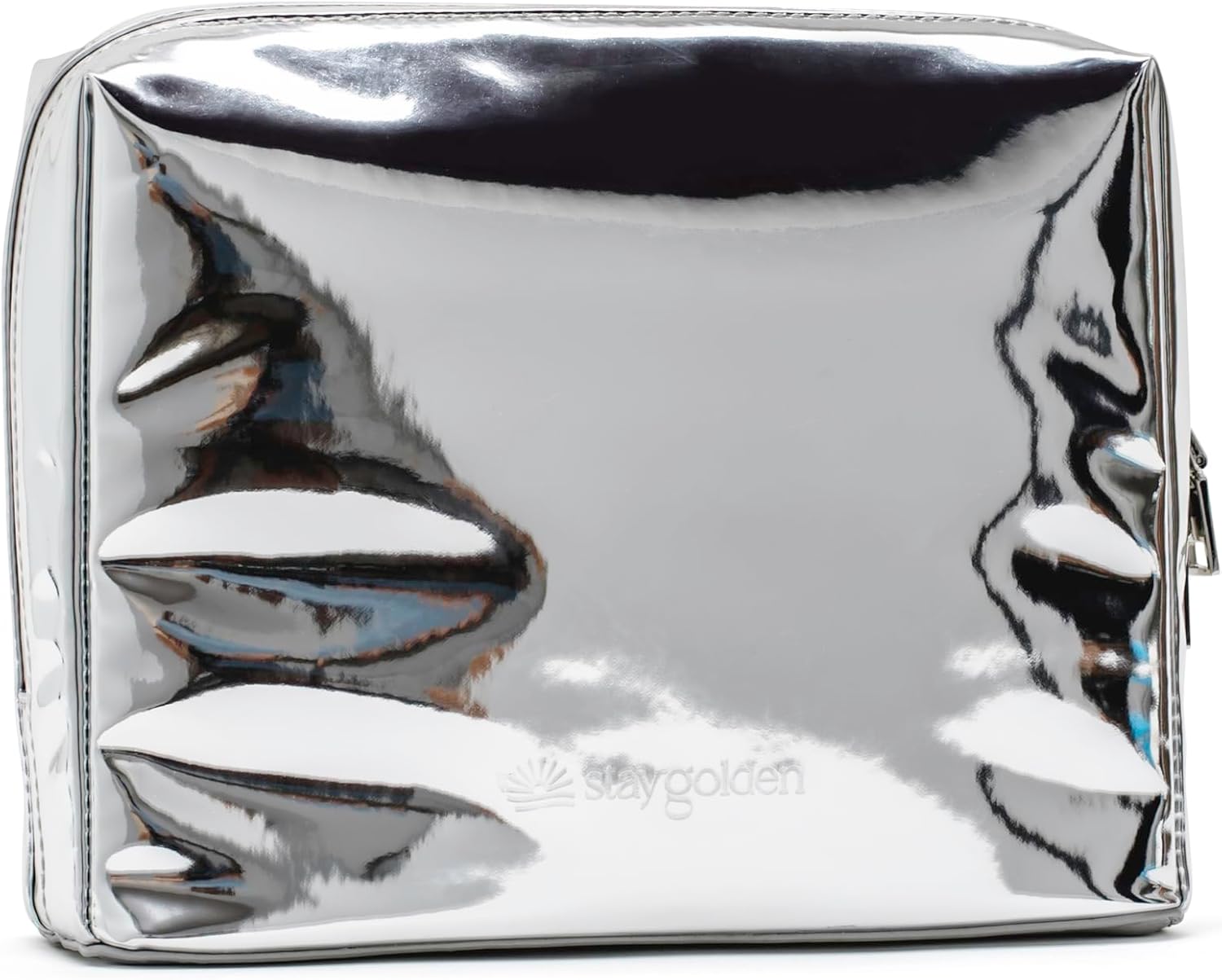 Stay Golden Insulated Waterproof Makeup Bag for Women Heat-Resistant Travel Cosmetic & Toiletry Bag | Luxurious Vegan Leather Portable Makeup Organizer - (Silver Zipper, Metallic Silver)