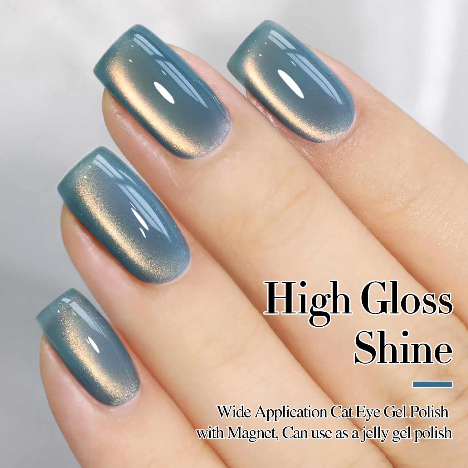 - Cat Eye Gel Nail Polish : Double Rhythm cat eye gel nail polish kit includes 1 color 15ml / 0.5 fl.oz gel nail polish. The cat eye gel can be combined with different bacse colors arbitrarily, you can get different colors nail art.You can use different base coat to creat different sytles.