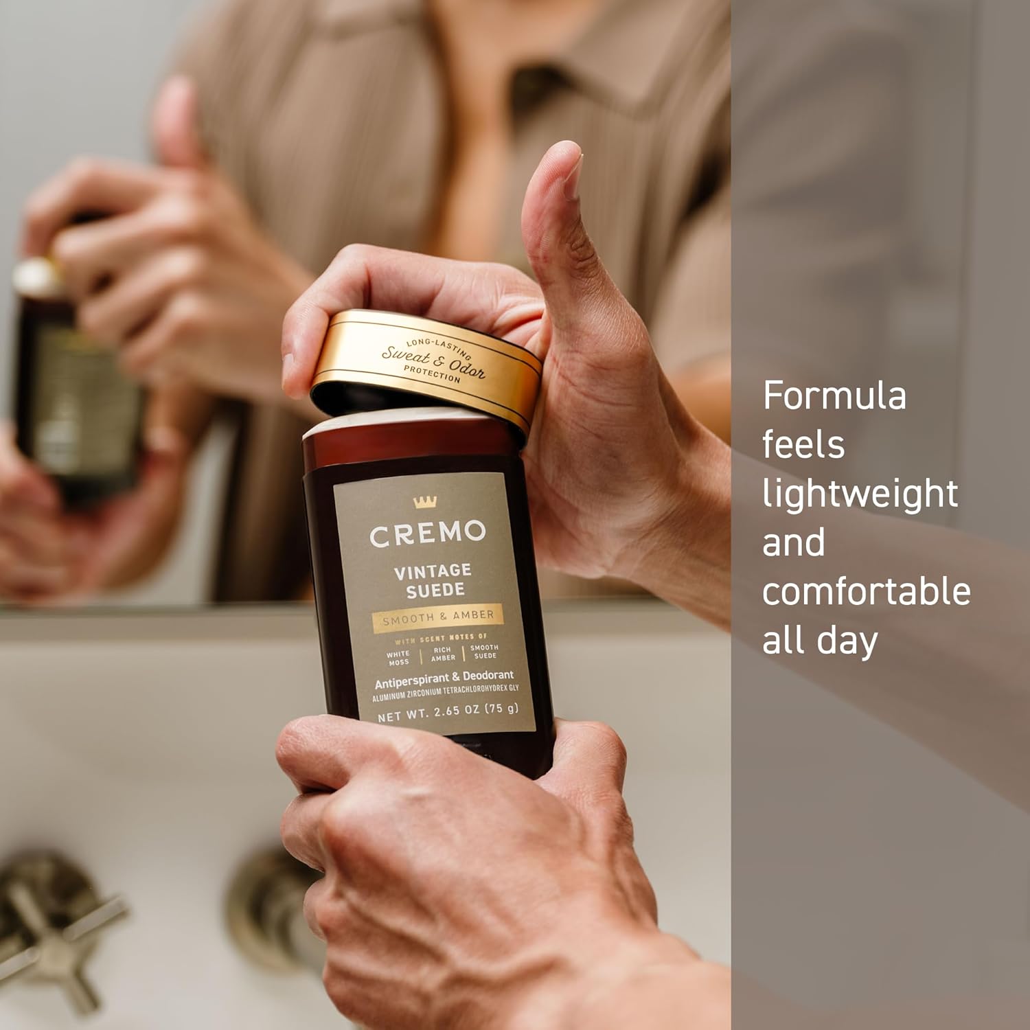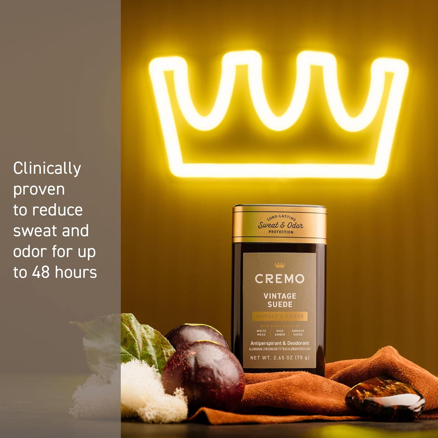 Cremo Vintage Suede Antiperspirant & Deodorant for Men, 48-hour Sweat and Odor Protection, 2.65oz