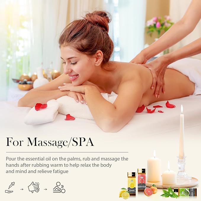 - Diffuser essential oils: Our essential oils can use a diffuser to evenly disperse the aroma into the air, Add 3-5 drops of essential oil to the diffuser, creating a variety of different atmospheres.Fill your space with pleasant aroma, Can help relax and improve sleep