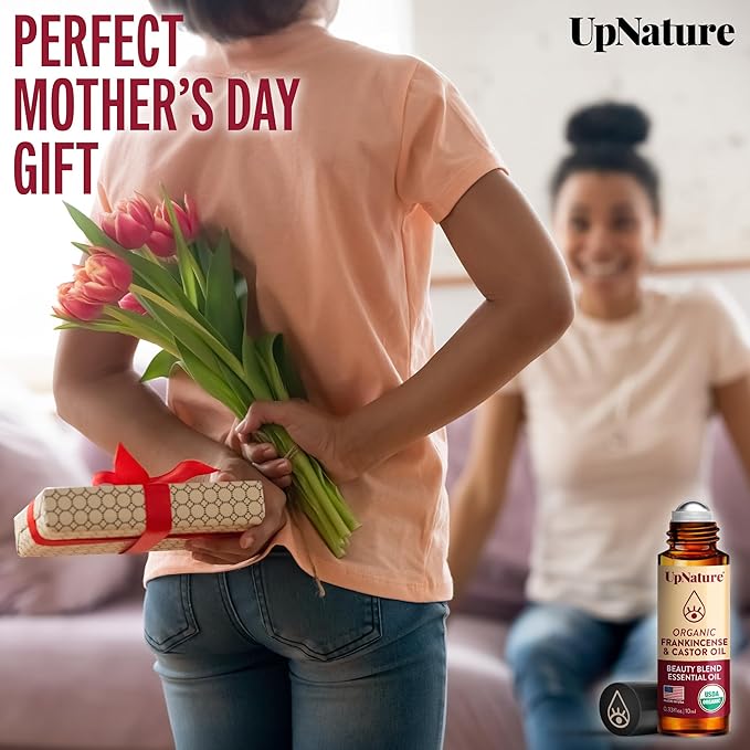 UpNature Beauty Essential Oil Blend Roll On - 100% Organic Castor Oil & Frankincense for Face - Wrinkles Dark Circles Under Eye Roller Ball Rollerball