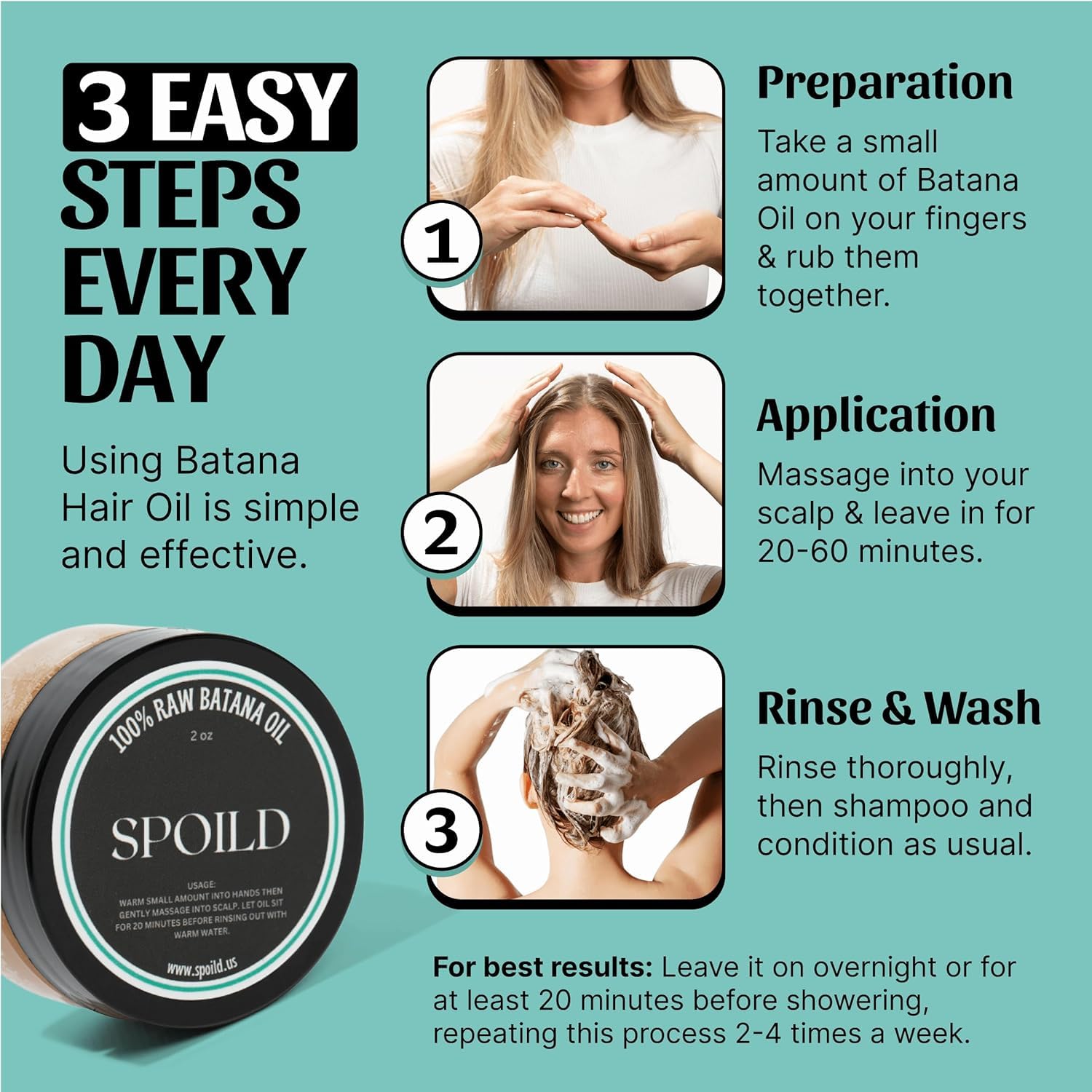 - True Beauty Starts from Within: At SPOILD, we believe in creating products that support confidence, self-care, and natural radiance. Like a trusted family recipe, each formula is crafted with intention, love, and only the best ingredients. Our 100% pure Batana Oil is a perfect example—one powerful ingredient with nothing added and nothing taken away. When you use SPOILD, you're nourishing more than just your hair and skin—you're embracing the beauty that's already yours.