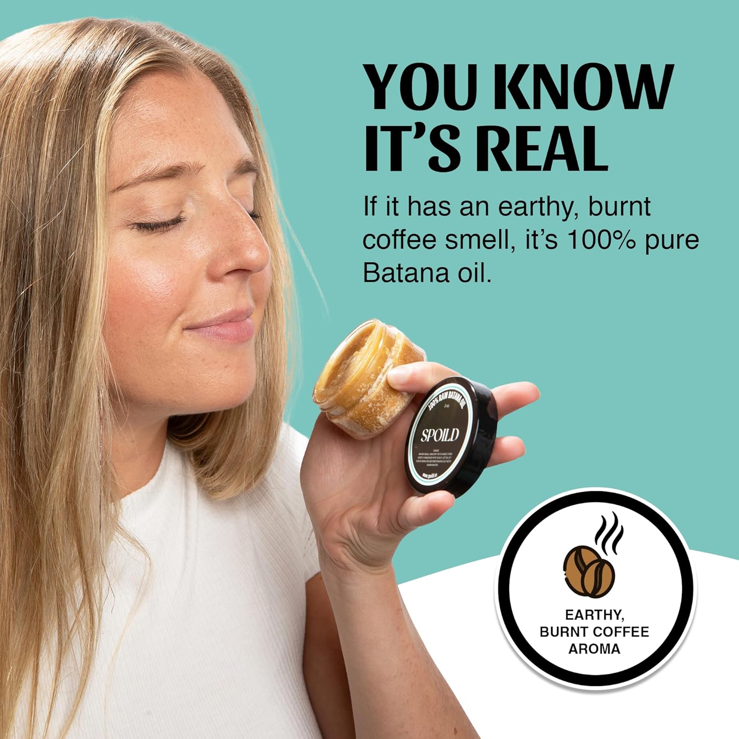 - Simple to Use, Packed with Benefits: Massage a small amount of SPOILD Batana Oil into your scalp, leave for 20 minutes, then rinse. Enjoy its earthy, coffee-like scent and easy application—now in secure, summer-ready packaging to protect its all-natural formula. The scent is potent and slightly burnt, a sign of pure, unrefined Batana oil with no additives or masking fragrances.