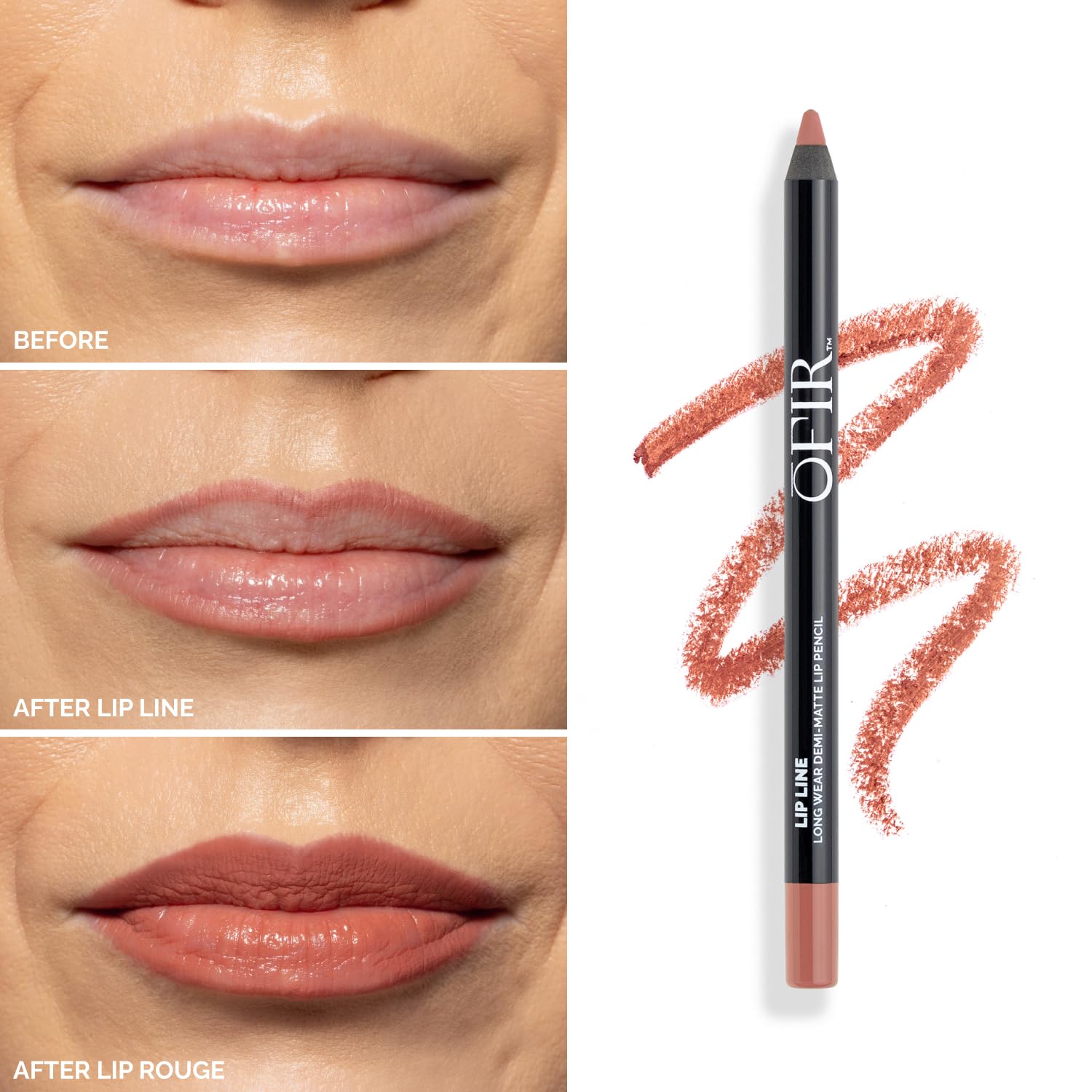 - Demi-Matte Finish: OFIR's lip liner pencil has a soft, velvety finish. It gives the look of a matte without the dryness, adding comfort to every swipe while locking in shape and color.