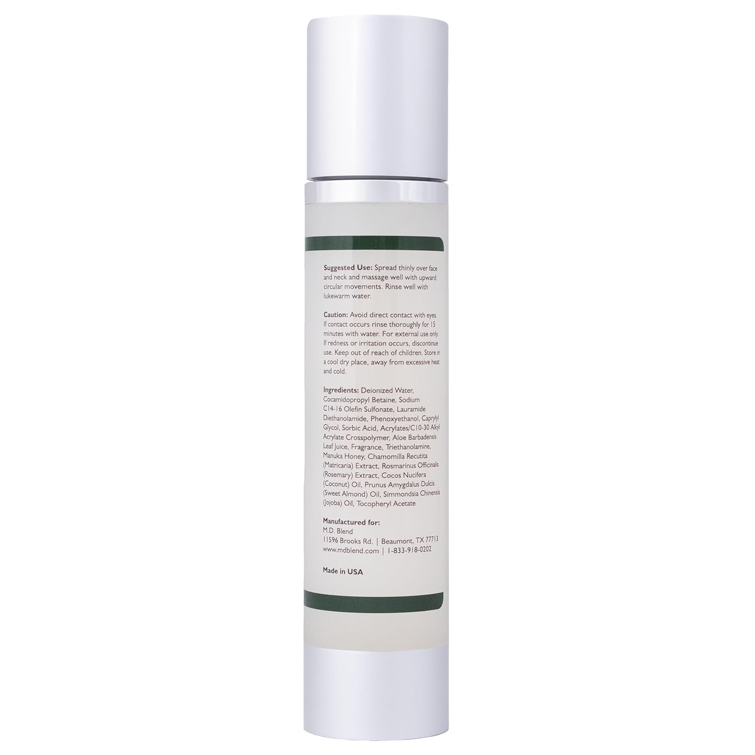 - Vegan, Cruelty-Free, & Earth-Friendly: M.D. Blend believes in clean beauty that's kind to your skin and the planet. Our Coconut & Honey Aloe Purifying Cleanser is 100% vegan with no animal-derived ingredients or animal testing. The planet-conscious packaging is recyclable. Feel good about revealing your natural radiance while supporting a brand that shares your values.