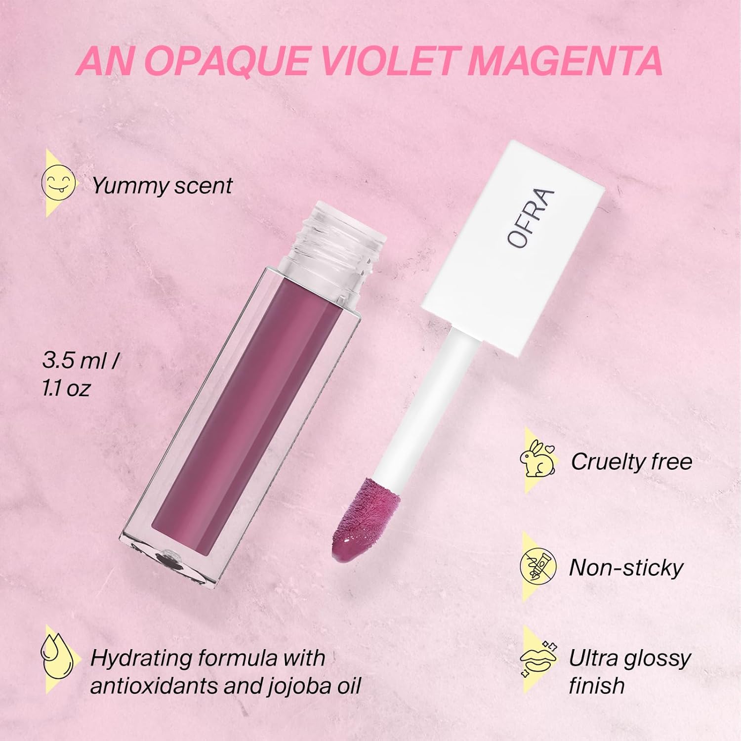 - An opaque violet magenta: This beautiful lip gloss delivers a soft, opaque violet magenta color, perfect for enhancing your lip tone while adding a radiant glow to your look.