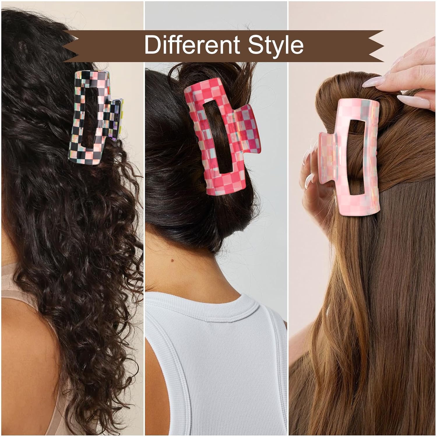 - Checkered Claw Clips:6Pcs multicolored aesthetic checkered hair claw clips with rectangle.You will get the blue-white, pink-white, orange-white, black-white, green-white, yellow-blue mix hair clips. You can pick the different color Hair jewelry to match your outfit and hairstyle to reflect your elegance and charm.