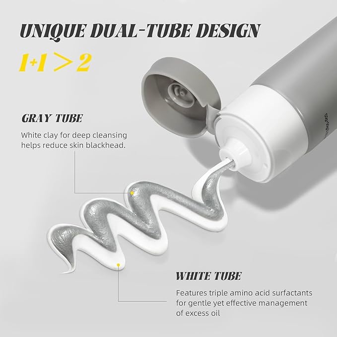 - STEP 1:Gentle and Effective Face Wash (3.52 Oz) - protects the skin barrier and does not strip the skin, this double tube cleanser uses gentle amino acid surfactants to maintain skin’s pH balance and hydration, and Amazonian White Clay to deep clean pores