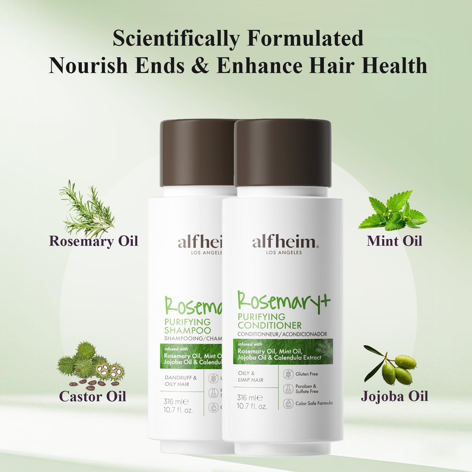ALFHEIM Rosemary+ Purifying Shampoo & Conditioner Set Travel Size – Balancing Care for Oily & Fine Hair with Rosemary, Peppermint & Jojoba Oils – Deep Cleanse, Lightweight Hydration, Sulfate Free