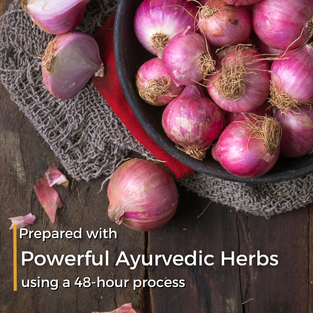 - ANTI-DAMAGING ANTIOXIDANTS The unique blend of red onion's hair oil for hair fall that provides antioxidants, sulfur, and potassium to restore scalp pH and protect against environmental damage.