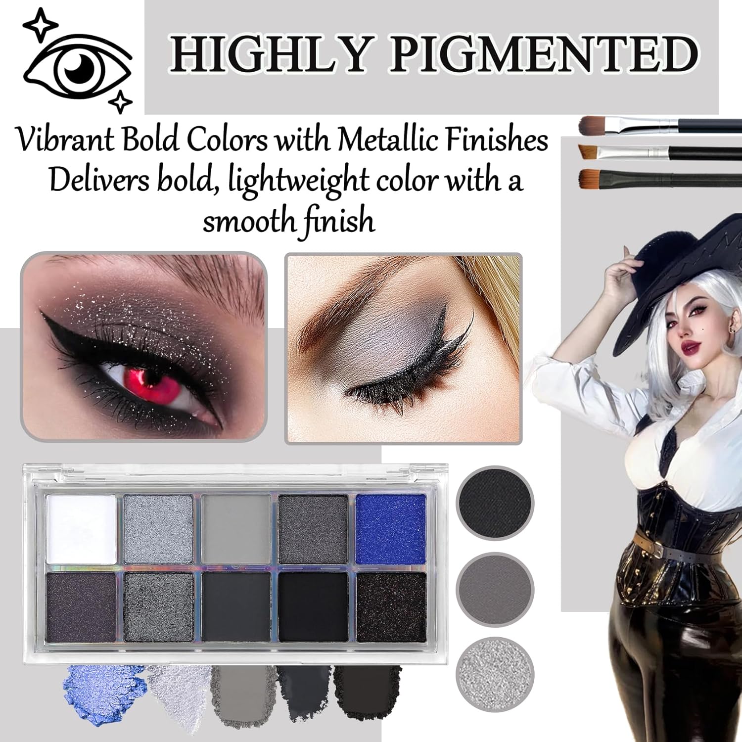 - 🥦【Waterproof and Long-lasting】Smokey goth eye shadow palette is specially formulated to be waterproof and not easily smudged, with strong adhesion that lasts all day long without removing make-up.