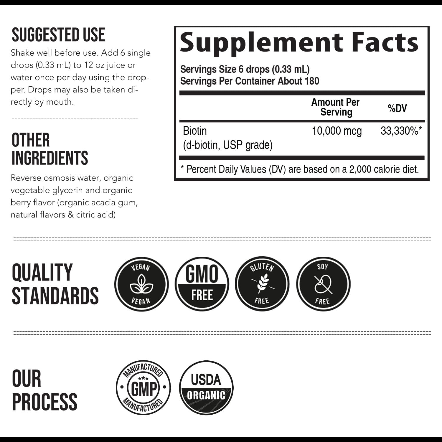 - SUPERIOR SUBLINGUAL ABSORPTION: This Biotin supplement is a liquid sublingual form that bypasses traditional digestion for fast and efficient absorption directly into the bloodstream, ensuring maximum benefit.