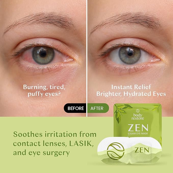 - Green Tea Steam Eye Masks for Refreshment: Our self-heating steam eye masks release a refreshing green tea aroma while gently warming to soothe tired eyes and rejuvenate your senses. Perfect for revitalizing after a long day or as thoughtful gifts for women and men!