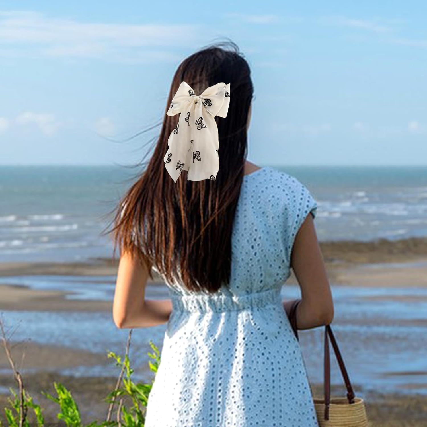4PCS Big Ribbon Hair Bows, Oversized Long-tail Hair Clips, Large Hair Barrettes, for Women and Girls Hair Styling Accessories, 4 Styles, (Butterfly, Flower, Heart, Circle)