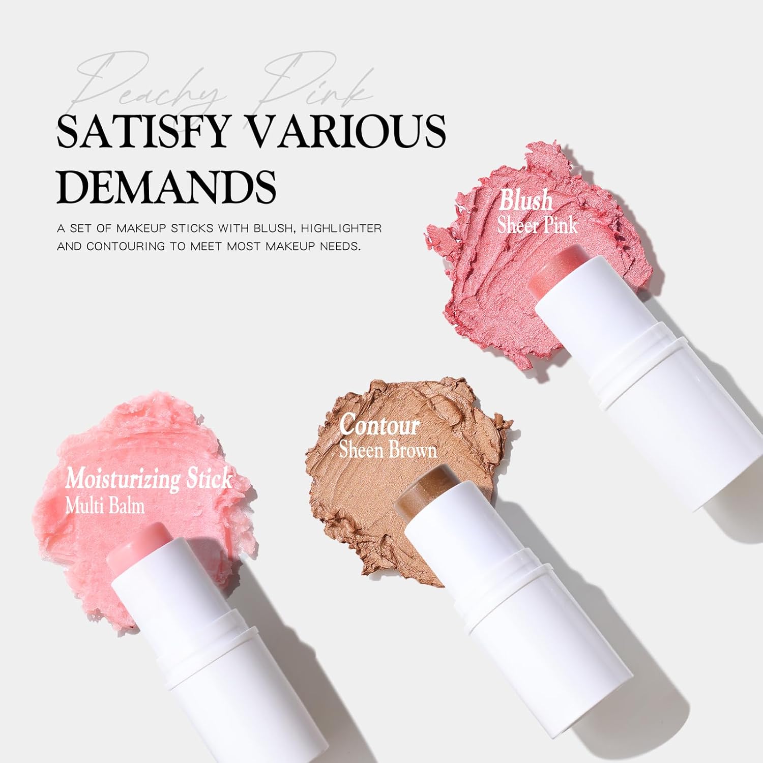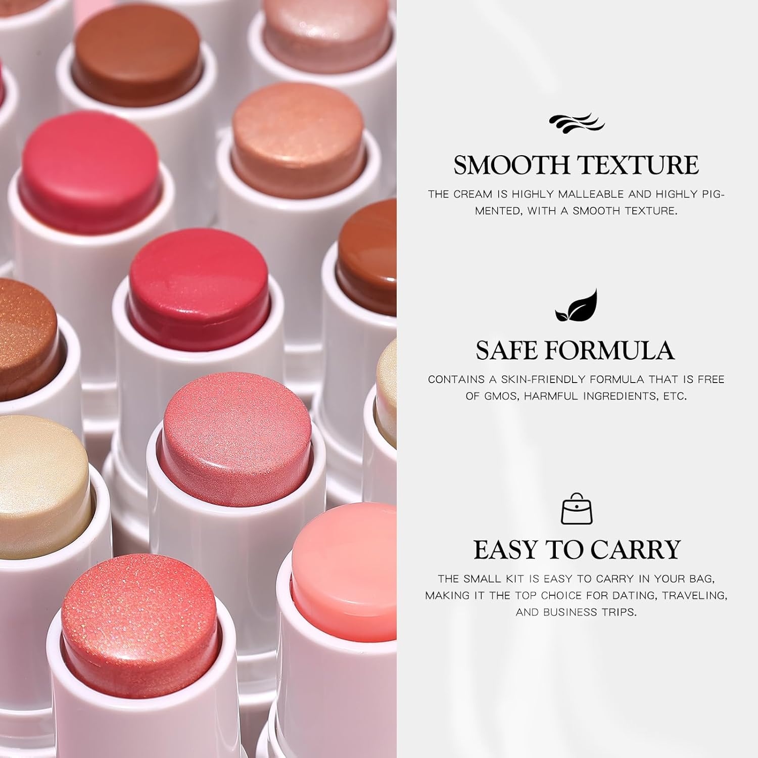 - 【Easy to Apply】Apply the Contour Stick, Blush Stick, and Highlighter Stick directly or after foundation to the forehead, cheeks, jawline, nose, and eyes. Blend with a brush or finger for a natural finish that enhances your features' three-dimensionality.