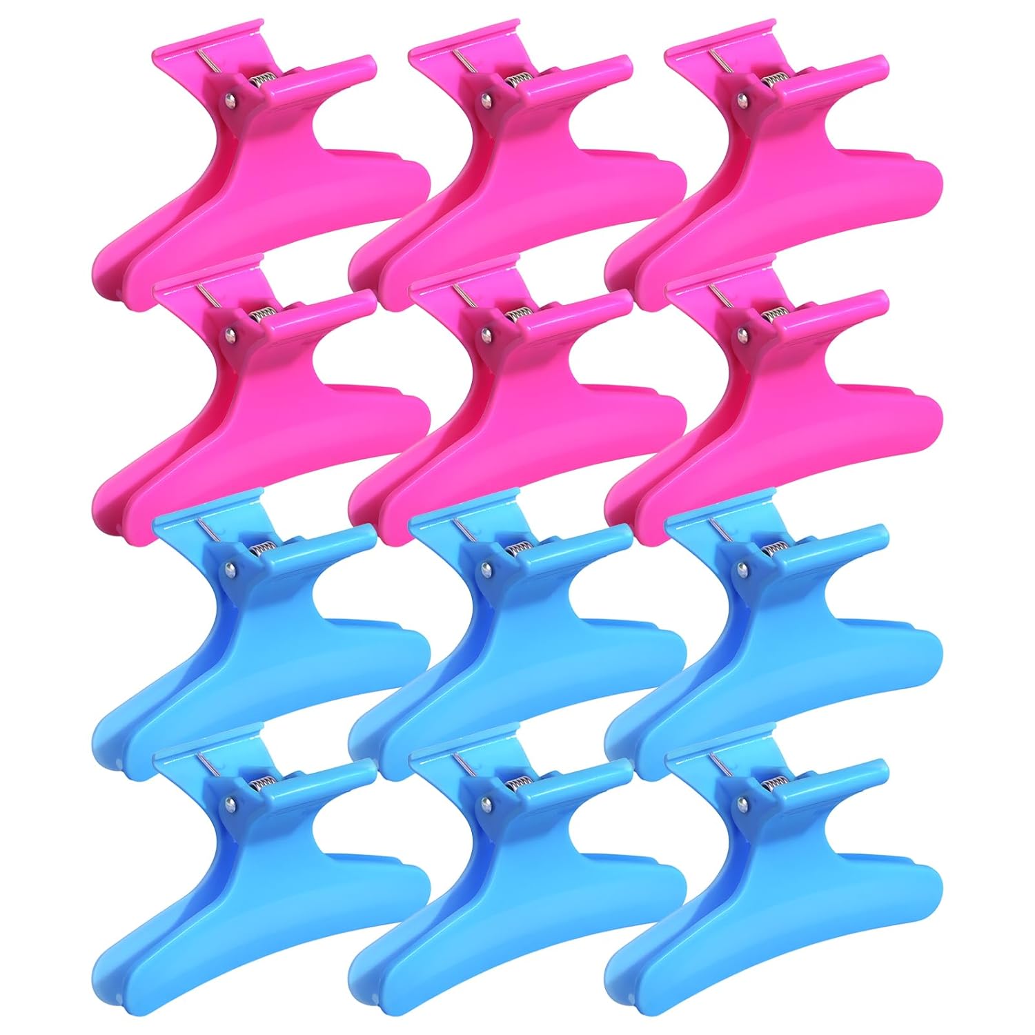 Ondder Blue Hot Pink Butterfly Hair Claw Clips for Styling, Sectioning, Makeup, Pro Hair Clamp Clips for Women, Girls