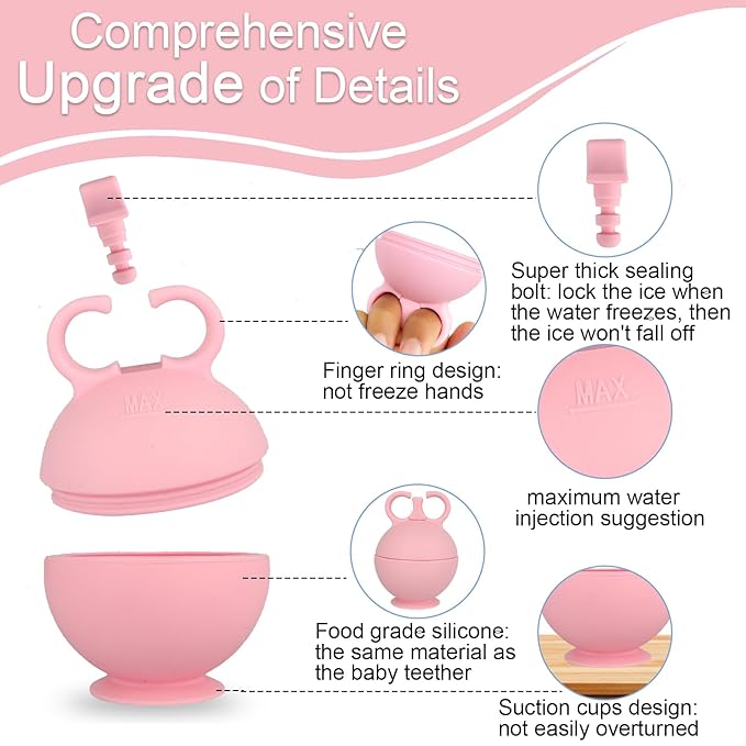 - Unique Finger Ring and Suction Cup Design: Different from the traditional ice roller, our ice face mold has a unique design. Hand ring design: protects your fingers from frostbite while in use, which is more ergonomic. The bottom suction cup design: the facial ice roller is placed more smoothly, which can prevent the face ice roller from being accidentally touched and tipping over causing water leakage.