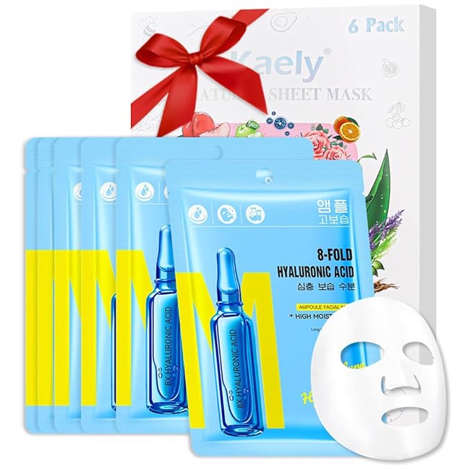 Hyaluronic Acid Face Sheet Mask Skincare,Hydrating Spa Face Mask For Sensitive Skin,Moisturize,Nourish for All Skin Types,Natural Skin Care Spa Face Mask for Women Men Girls,Pack of 6