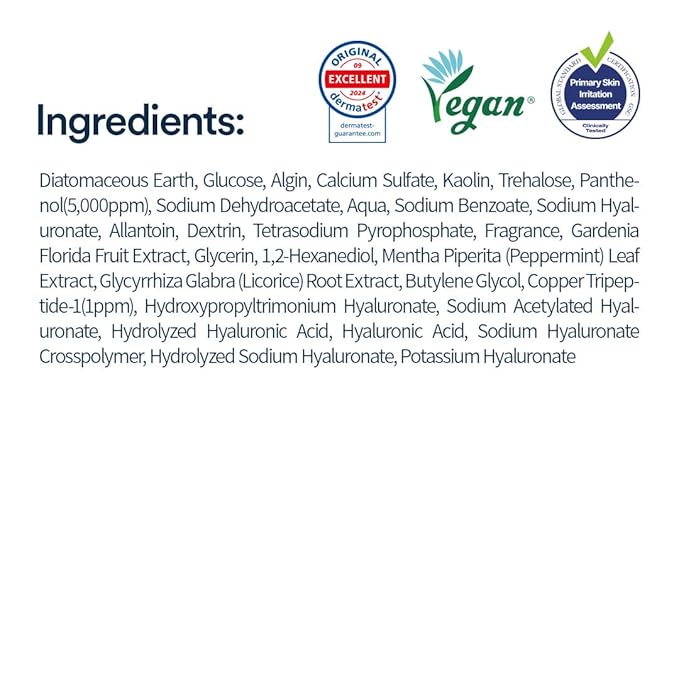 - [Deep Hydrating & Cooling]: The hydrating and cooling effects of Algin and Glucose replenish moisture, create a barrier to retain and bond moisture, improving inner skin dryness by approximately 16.550%