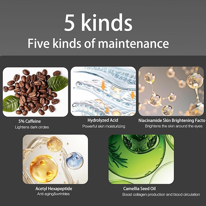 - Powerful Anti-Aging Formula: Our eye cream combines 5% caffeine and 5% retinol to effectively target dark circles, puffiness, and fine lines. This advanced formula helps rejuvenate the delicate skin around the eyes, promoting a youthful and refreshed appearance.