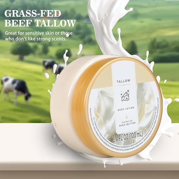 - 24-HOUR SUPER MOISTURIZING: Our Tallow Body Lotion contains natural ingredients of Shea butter, which can deeply nourish and moisturize the skin, strengthen the skin barrier and replenish water, provide 24-hour strong moisturizing, and make the skin soft, smooth and natural.