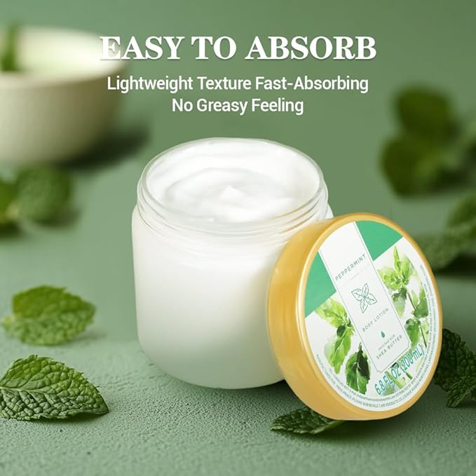 - EASY TO ABSORB: The Peppermint Body Lotion has a fast absorbing, non greasy formula that can be quickly absorbed into the skin without leaving any greasy or viscous residues, providing hydration for a whole day. Let you enjoy the convenience of body lotion without leaving any greasy feeling.