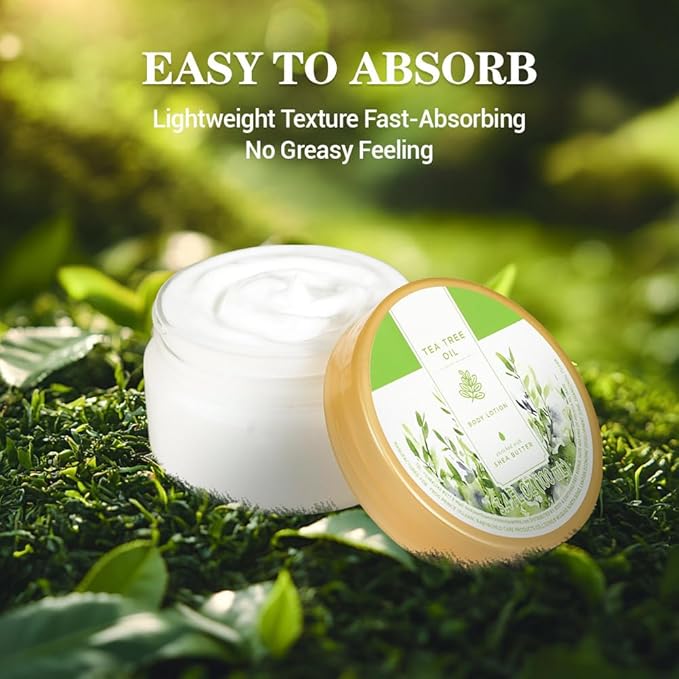 - EASY TO ABSORB: The Tea Tree Oil Body Lotion has a fast absorbing, non greasy formula that can be quickly absorbed into the skin without leaving any greasy or viscous residues, providing hydration for a whole day. Let you enjoy the convenience of body lotion without leaving any greasy feeling.
