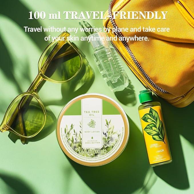 - TRAVEL-FRIENDLY: This Tea Tree Oil Body Lotion is designed for travel convenience. It has a capacity of 100ml and is small and exquisite, making it easy to carry in a bag or suitcase. You can travel without the burden of flying and take care of your skin at any time. It is a considerate travel companion.