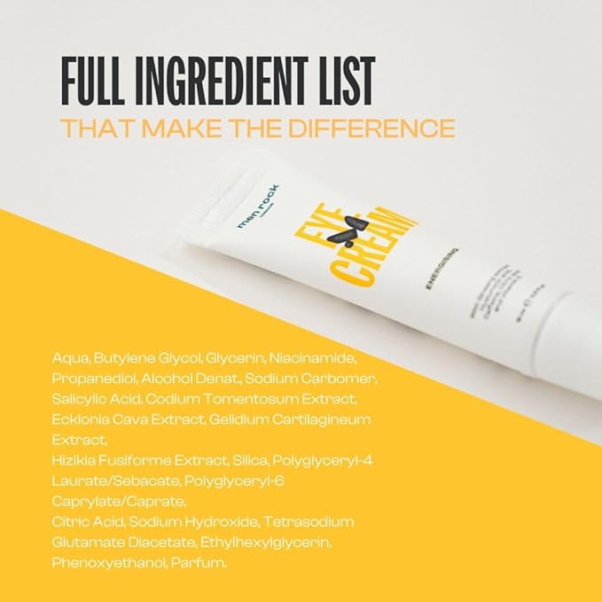 Men Rock Eye Cream - Moisturizing Under Eye Cream for Dark Circles with Ginseng Extract, Vitamin E - Mens Face Care - Mens Skincare Products - 0.5 oz