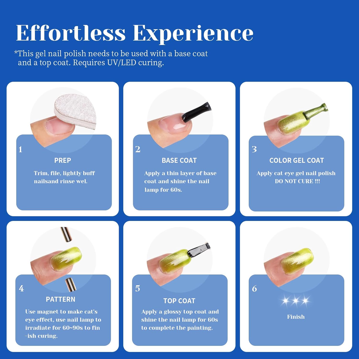- Achieve stunning nails with TUTUYU's Blue Cat Eye Gel Nail Polish, which features a captivating cat eye effect that adds depth and allure to your manicure.