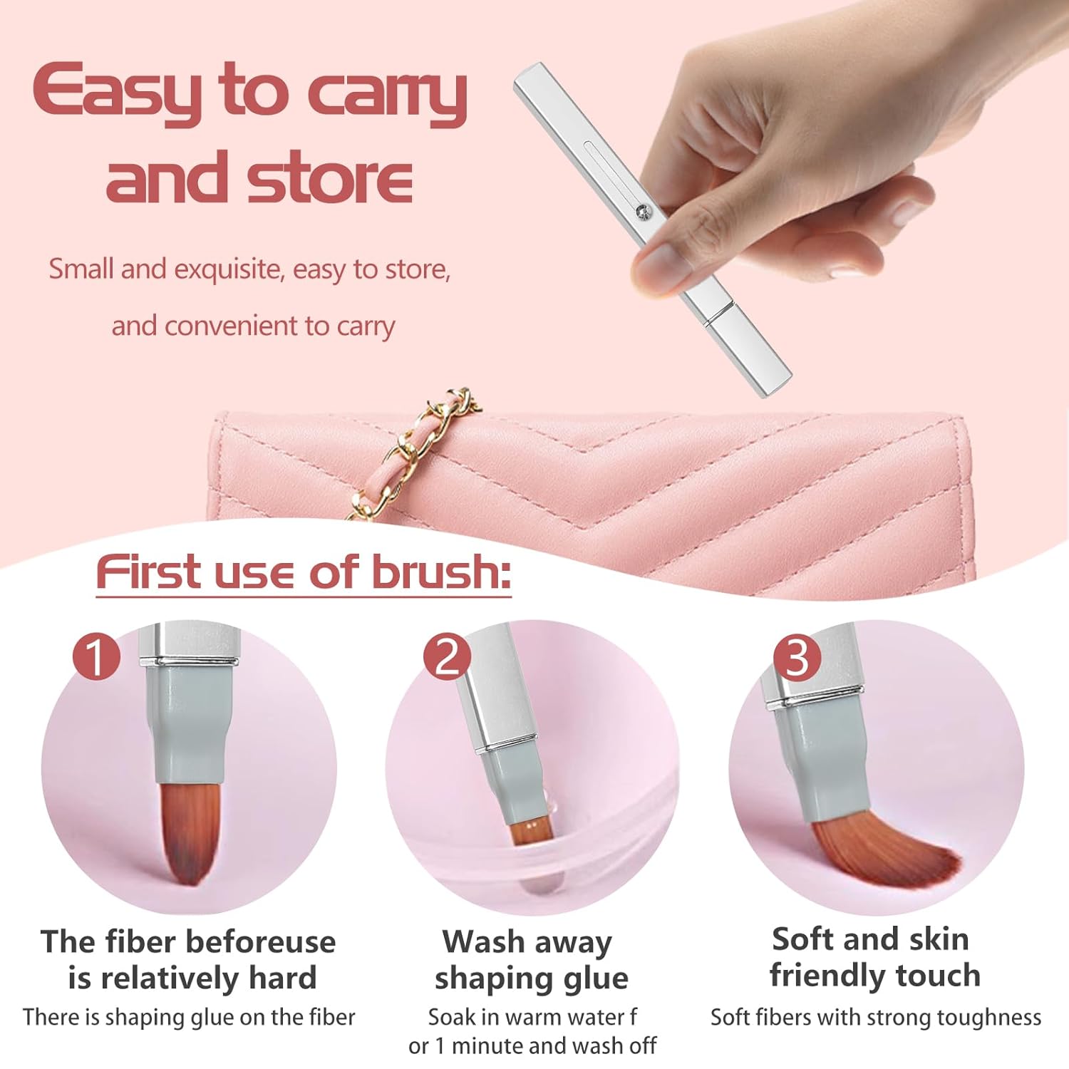 - QUALITY MATERIAL - Our retractable lipstick brush is made of quality bristles with soft and smooth touch. The metal handle is lightweight and not easy to deform. The lip brushes are made of metal handle, soft fibrous hair, eco-friendly and durable. It’s lightweight, no occupy your space, conveniently for carrying out in the bag.