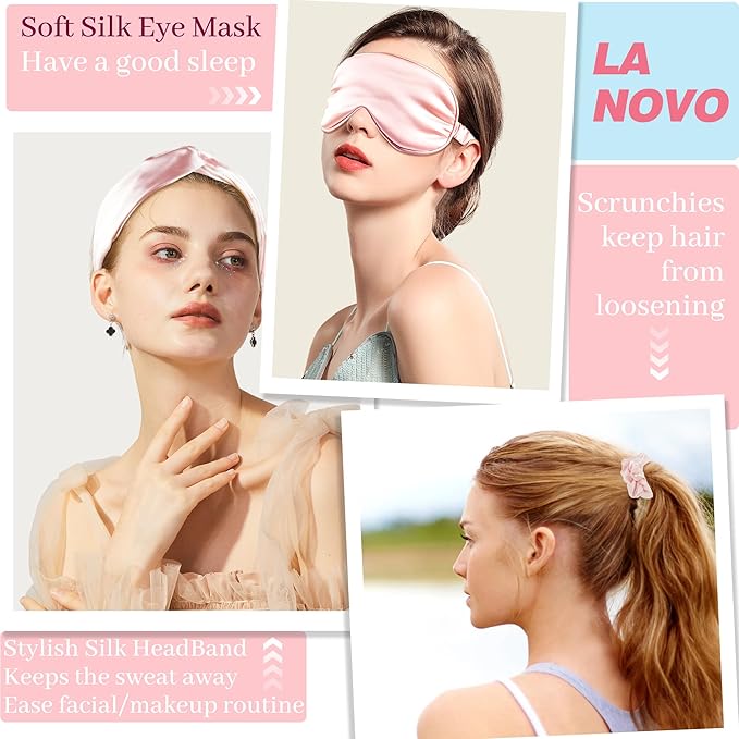 - ADDED LUXURY ACCESSORIES: The set also includes a silk eye mask, a silk hairband, and a scrunchie—soft, lightweight, and fashionable accessories perfect for relaxation. A greeting card is included for your personal message, making this gift extra special. LA NOVO ensures your satisfaction with risk-free shopping. If any issues arise, reach to us for a solution.