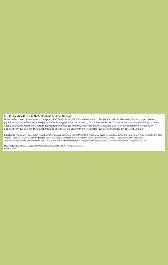 TheAgelessBox® Beetroot Lip Balm – Natural & Organic Lip Care with Shea Butter & Sweet Almond Oil – Hydrating, Antioxidant-Rich & Nourishing – Plant-Based, Cruelty-Free & Eco-Friendly