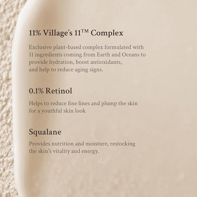 - FACE CREAM FORMULA: 85% Natural Ingredients with Vegan formulation, containing 3 % Squalane and Palmitic Acid, Village’s exclusive complex, and 0.1 % Retinol