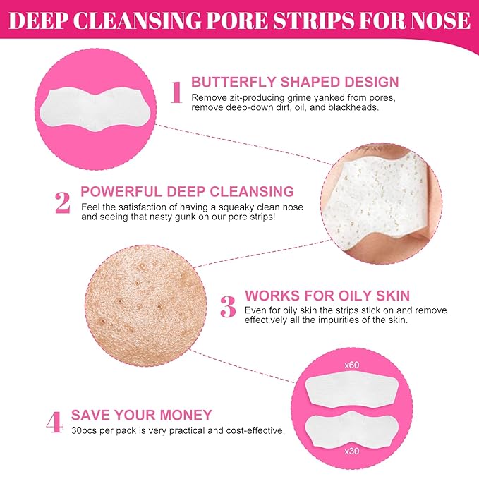 - CLEAN SKIN: Deep pore cleansing strip instantly removes dirt and oil from facial pores, helps remove blackheads, tightens pores.