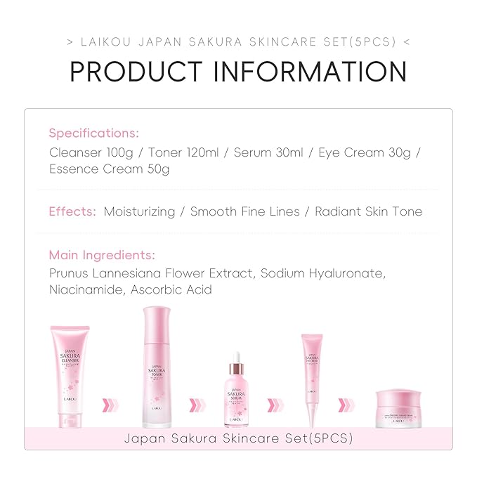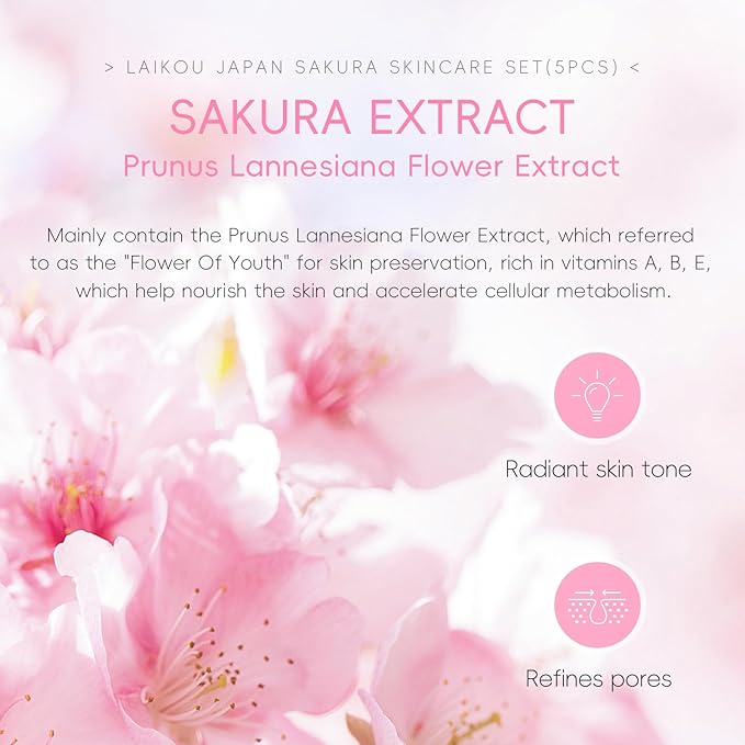 - 【Face Routine Set for Women】LAIKOU Japan Sakura skin care gift set allowing you to have a smoother, rosy and radiant complexion.
