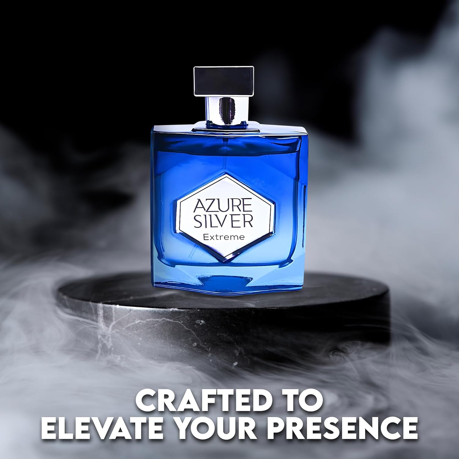 - Long-Lasting Freshness: Azure Silver Extreme Cologne for men is classy and elegant, with a hint of sweetness and a touch of citrus. A few spritzes in the morning are enough to create a stimulating, lasting aroma that will envelop you all day and well into the evening.
