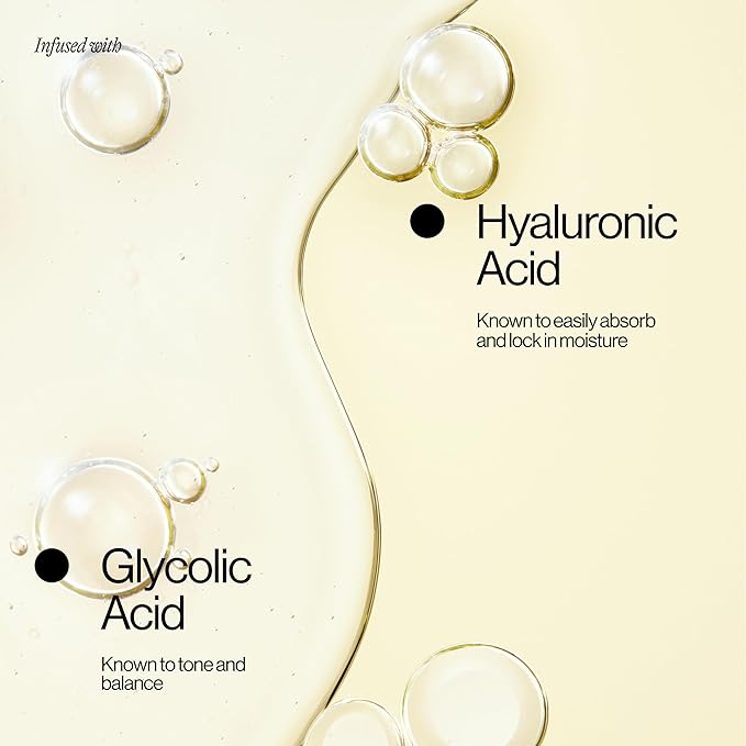 - Key Ingredients: Infused with hyaluronic acid, known to lock in moisture, and glycolic acid, known to tone and balance