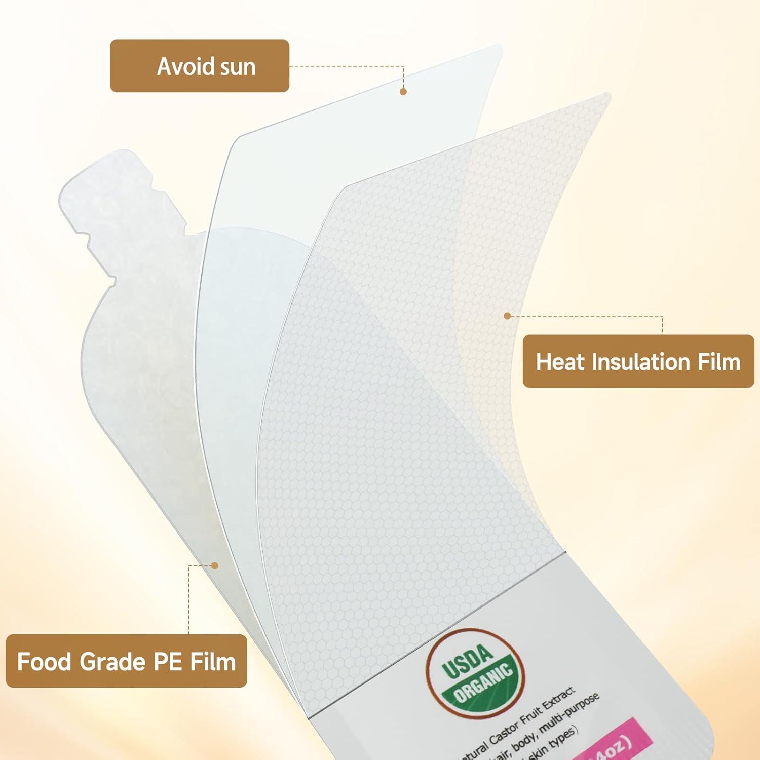 - DISPOSABLE FOOD STORAGE BAG - The sealing of the small bag can avoid pure castor oil from repeatedly coming into contact with air and being oxidized during long-term use. This food grade bag protect oil from sun damage.