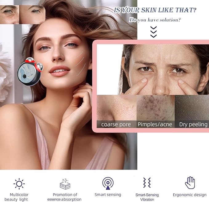 - 【Smart Vibration Microcurrent】Blue light and other color light microcurrent facial massage can effectively slow down the aging. reducing wrinkles, improving sagging skin, reducing double chin, making the appearance radiant, and increasing the absorption of facial skincare products
