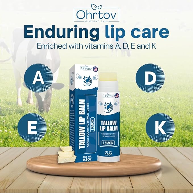 - INTENSELY HYDRATING FORMULA: Immerse your lips in moisture with our grass-fed organic beef tallow lip balm with lemon flavor. Crafted with natural fats, akin to those in human skin, it maintains your lips' moisture barrier for enduring hydration and velvety softness.